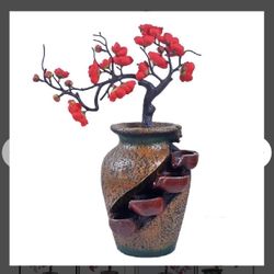 YOUUGIOR Red Peach Flower Plum Tree Resin Trunk with Jar Rustic Fountains Waterfall Fountain Soothing Sound Tabletop Office Home Desktop Decor$30La Mirada, CA