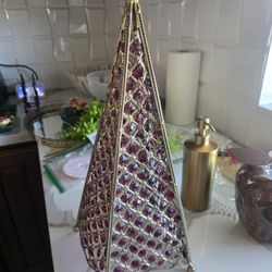 Vintage Jeweled Brass 4 Sided Table Top Pyramid Tree 17.5 Christmas Tree Rare$25Hacienda Heights, CA