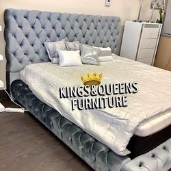 QUEEN BED, BEDROOM, VELVET ROLLED TOP TUFTED, NO FOUNDATION REQUIRED - [NEW]$479Gardena, CA