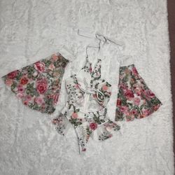 New Xs white embroidered floral bodysuit top festival outfit boho flower rave$100Upland, CA