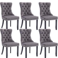 Tufted Dining Chairs Set of 6, Velvet Upholstered Dining Chairs with Nailhead Back and Ring Pull Trim, Solid Wood Dining Chairs for Kitchen/Bedroom/Di$300El Monte, CA