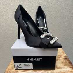 New Nine West Black Satin Heels With Crystal Buckle, Size 7$35Irvine, CA