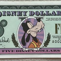 1998 Disney Dollar $5.00 Bill Goofy $65Lake Forest, CA