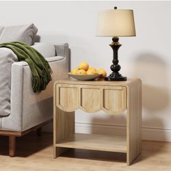 Small Night Stand, Mid Century Modern Farmhouse Wood Nightstand with Wave Panel Drawer, Bed Side End Table for Small Space, Living Room - Natural$40Riverside, CA