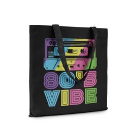 80's Vibe Reusable Shopping Tote Bag, Black with Colorful Cassette Tape Design, 15x16 Inches$20West Hollywood, CA