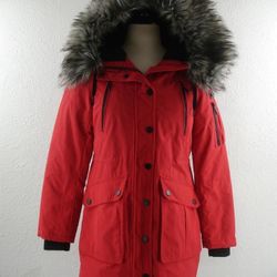 BCBGeneration Red Parka Jacket – Faux Fur Hood – Size S – Super Warm $25Irvine, CA
