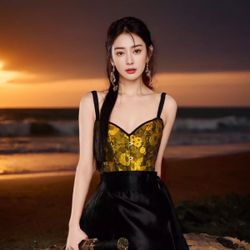 Gold Floral Corset Bustier Top (New Chinese Style) – Size S $20Irvine, CA