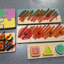 Lovevery Melissa & Doug Montessori Wooden Chunky Baby Toddler Puzzle Toy Lot Comes with 4 puzzles In good condition $25Fullerton, CA