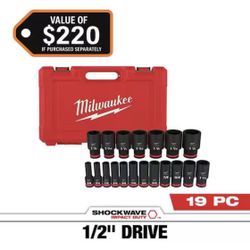 Milwaukee SHOCKWAVE 1/2 in. Drive SAE 6 Point Impact Socket Set (19-Piece)$85Costa Mesa, CA