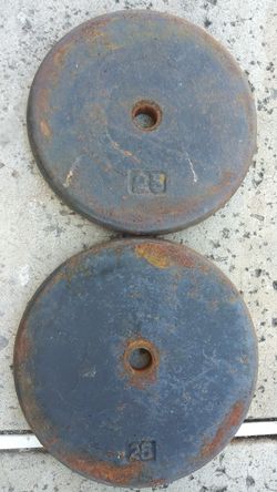 WEIGHTS NEW. 50LBS & 25 LBS STEEL PLATES 1 INCH HOLE. $ NEW$30Anaheim, CA