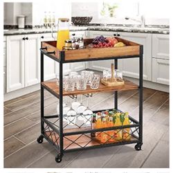 kealive Kitchen Bar Cart for Home Mobile Metal Wine Cart on Wheels with Handle Rack, Glass Holder, Removable Wood Box Container, Rustic Serving Cart 3$45Irvine, CA