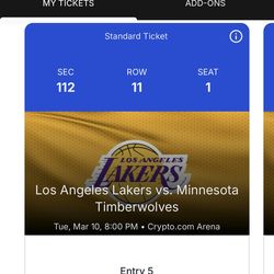 Los Angeles Lakers Vs Minnesota Timberwolves Tue March 10th$100Los Angeles, CA
