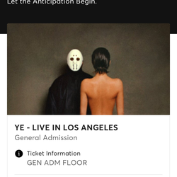 ye live in la GA Floor ticket x1$1,500Duarte, CA