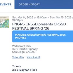 FNGRS CRSSD Festival 2 Day Passes$300Ontario, CA