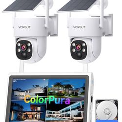Solar Security Cameras Wireless Outdoor with 10'' Monitor, 2pcs 2K Solar Powered Camera System, 360° PTZ, Color Night Vision,Human Detection,10CH NVR $85Rosemead, CA