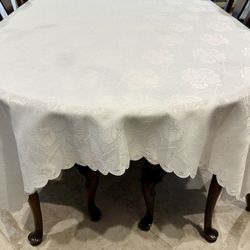 Rectangular White Tablecloth Damask Rose Print with Scalloped Border$20Laguna Niguel, CA
