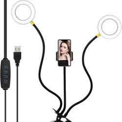 5" Dual Selfie Ring Light with Cell Phone Holder, Oldshark Clip-On LED Ring Light, 360 Degrees Flexible Arms, 3-Light Modes, 10 Brightness Levels for $25Santa Ana, CA