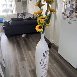 Big white ceramic vase with fake sunflowers great decoration $30West Covina, CA