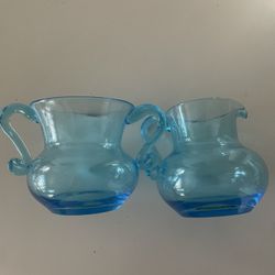 Vintage Hand Blown Art Glass Colonial Blue Small Sugar and Creamer Set w/Pontil$20Fullerton, CA