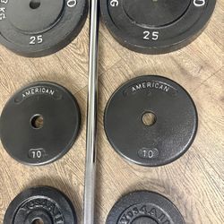 BRAND NEW: 7 ft Standard Bar With VINTAGE Cast Iron Weight Plates: 50s,25s, 10s, And 5s. (Total: 205 lbs) $290Los Angeles, CA