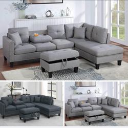 ✅️4 pc grey boucle fabric upholstered sectional sofa with storage arms and ottoman✅️✅️$548Hawthorne, CA