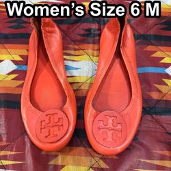 Vtg Tory Burch SZ 8 ballet flats shoes women leather orange$50Ontario, CA