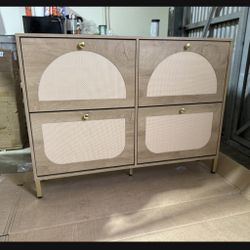 New in a sealed box Rattan Shoe Cabinet W 48”xH 36”xD 10” with 4 Flip Drawers, Modern 40 Pair Shoe Storage Cabinet for Entryway with Golden Handles$45Orange, CA