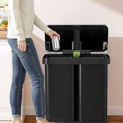 60L(16 Gal) Dual Trash Can, Stainless Steel Kitchen Garbage Can, Double Compartment Classified Rubbish Bin, Recycle Dustbin w/Plastic Inner Buckets, S$90Santa Ana, CA
