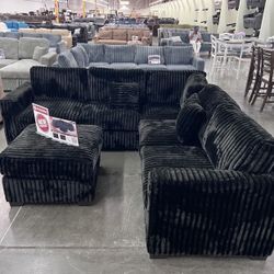 ✅️✅️4 pc Black cordury fabric upholstered sectional sofa with ottoman✅️✅️$445Pico Rivera, CA