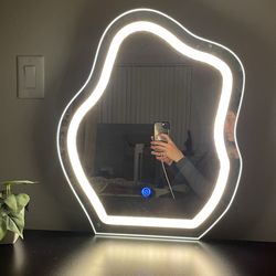Vertical Vanity Mirror,Anti-Fog Large Circle Makeup Mirror, 3-Color Dimmable LED Light,Cloud Shaped Makeup Mirror with LED Light(Color:White$30Rosemead, CA