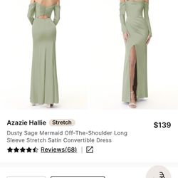 Sage green Azazie bridesmaid/prom Dress$60Long Beach, CA