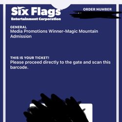 2 Six Flags Magic Mountain Tickets$50Pico Rivera, CA