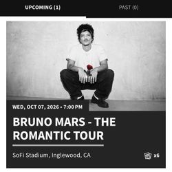 Bruno Mars Tickets $400Manhattan Beach, CA
