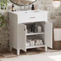 30" White Freestanding Bathroom Vanity w/ Ceramic Sink [FAUCET NOT INCLUDED] [NEW] **Retails for $600 <Assembly Req>$250Hacienda Heights, CA