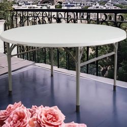 White 5 Ft 60inch Round Plastic Folding Table Commercial Banquet Dining Wedding Party Events Home Kitchen Patio Indoor Outdoor Fold In Half$125La Habra Heights, CA