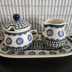 Blue Rose Polish pottery Maia creamer and sugar set with tray$40Whittier, CA