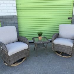 Gray 3-Piece Wicker Outdoor Rocking Chair with Gray Cushions and Side Table$200Anaheim, CA