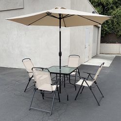 Brand New $140 Patio 6 Piece Outdoor Set with 32x32” Table, 4pc Folding Chairs and 10 FT Tilt Umbrella $140El Monte, CA