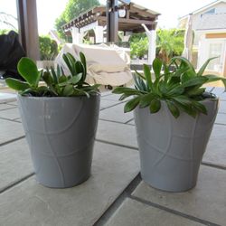 Pair Of Gray Print Garden Pots With Succulents $10Huntington Beach, CA