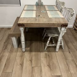✅️✅️ 6 pc grey finish wood dining table set padded seat chairs and bench ✅️✅️$318Pico Rivera, CA