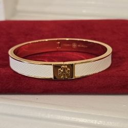 Brand New White Tory Burch Kira Enamel Hinged Bangle Bracelet with logo 18K-Gold-Plated$125Beverly Hills, CA