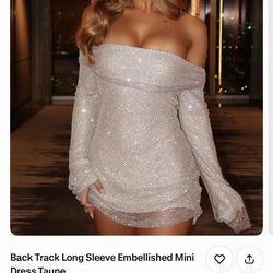 White Fox Back Track Long Sleeve Embellished Mini Dress Taupe$125East Los Angeles, CA