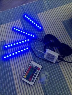 Car RGB LED Strip 4*9pcs SMD 5050 10W Car Interior Decorative Atmosphere Strip Auto RGB Pathway Floor Light Remote Control 12V$25Santa Ana, CA