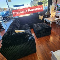 Stylish ‼️ Black Sectional Sofa With Ottoman Black Corduroy $490Downey, CA
