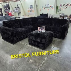 ✅️✅️️✅️4 pc Black cordury fabric upholstered sectional sofa with ottoman✅️✅️$445Los Angeles, CA