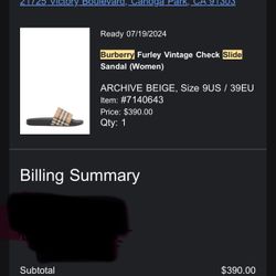 Burberry Slides Size 9 Woman But Run small Im A 71/2 /8$260Los Angeles, CA