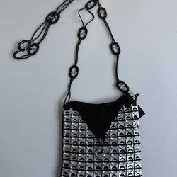 Silver 7x6 Vintage Crochet Soda Pop Top Bag Gothic Punk. 47” Strap. Lining Clean. black crochet purse #festival #raver #gothic$40Redondo Beach, CA
