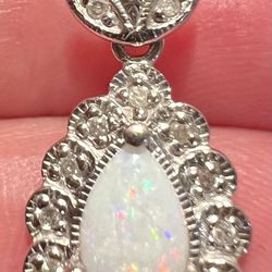🌸Opal Diamond Vintage 14K Solid White Gold Pear Shaped Pendant + 14K Solid Gold Chain Necklace$250Los Angeles, CA