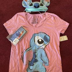 Disney Stitch Women’s T-shirt( available in size XLarge )NWT and Disney Parks Stitch face mask and Disney Parks Stitch Ears Mickey Ears Hat adult siz$75Montebello, CA