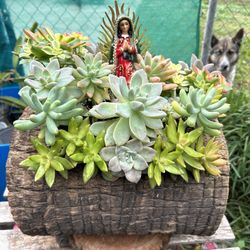 Succulents Arrangements En Tronko Con La Virgen De Guadalupe $70Bell Gardens, CA